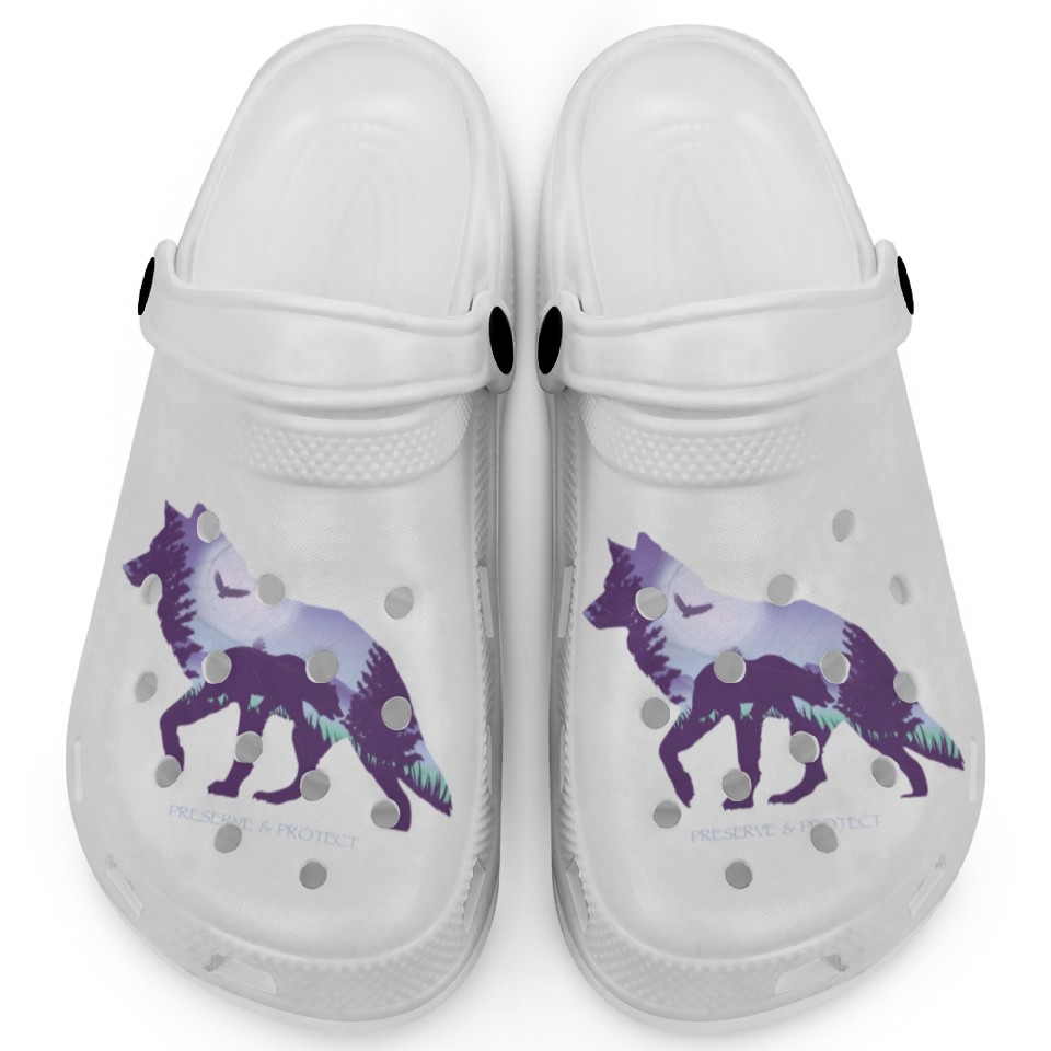You're searching for a one-of-a-kind product Preserve And Protect Wolf Eagle Bear Clogs For Kids WHITE belong theme Clogs at Printblur