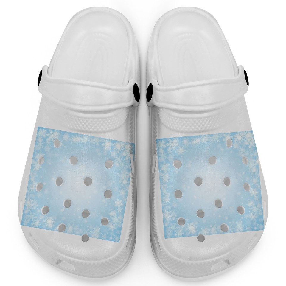 You're looking at the eye-catching product Pretty Blue Snowflakes Pattern Clogs For Kids WHITE belong theme Clogs at Printblur