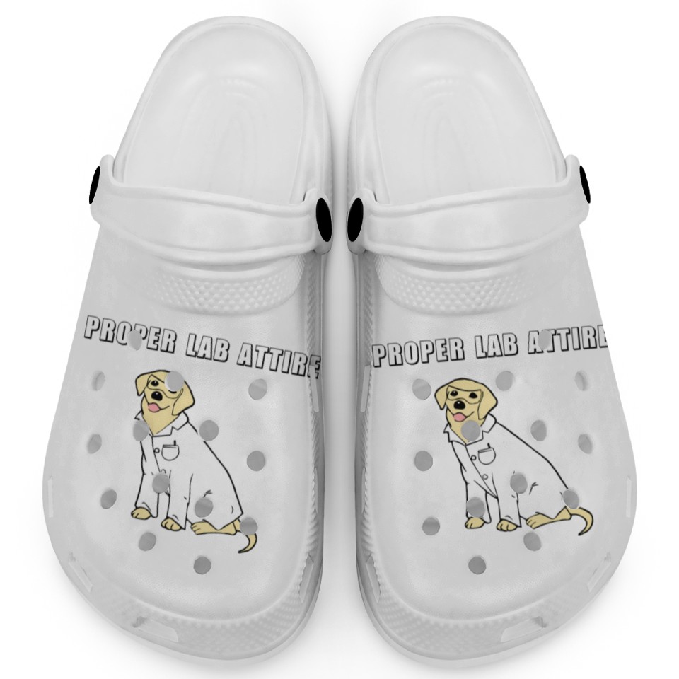 Buy eye-catching Proper Lab Attire Laboratory Dog Pun Science Clogs or see more Clogs products at Printblur shop now to explore many surprises from our shop!