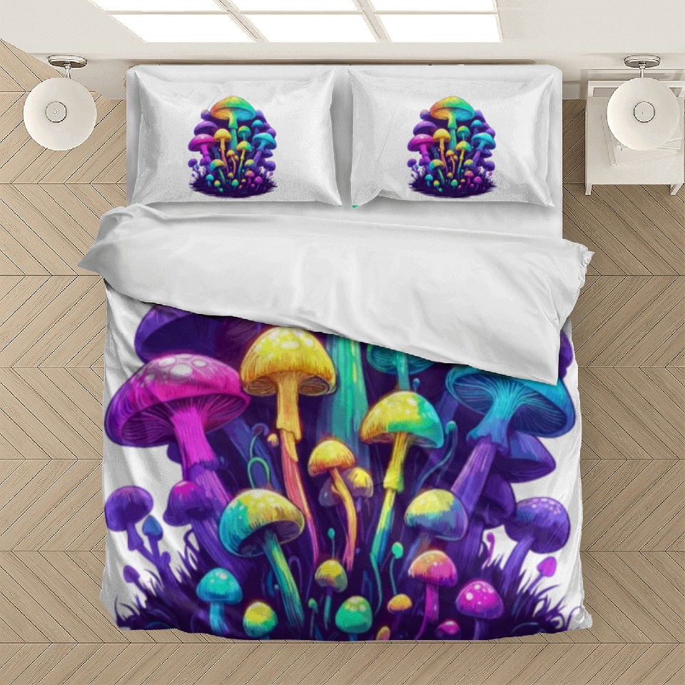 You are shopping for a stunning and trendy product Psychedelic Colorful Mushroom Bedding Sets For WHITE belong theme Bedding Sets at Printblur