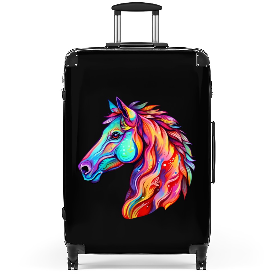You are shopping for a stunning and trendy product Psychedelic Horse Head Gallop Equine Equestrian Suitcases For Black belong theme Suitcases at Printblur