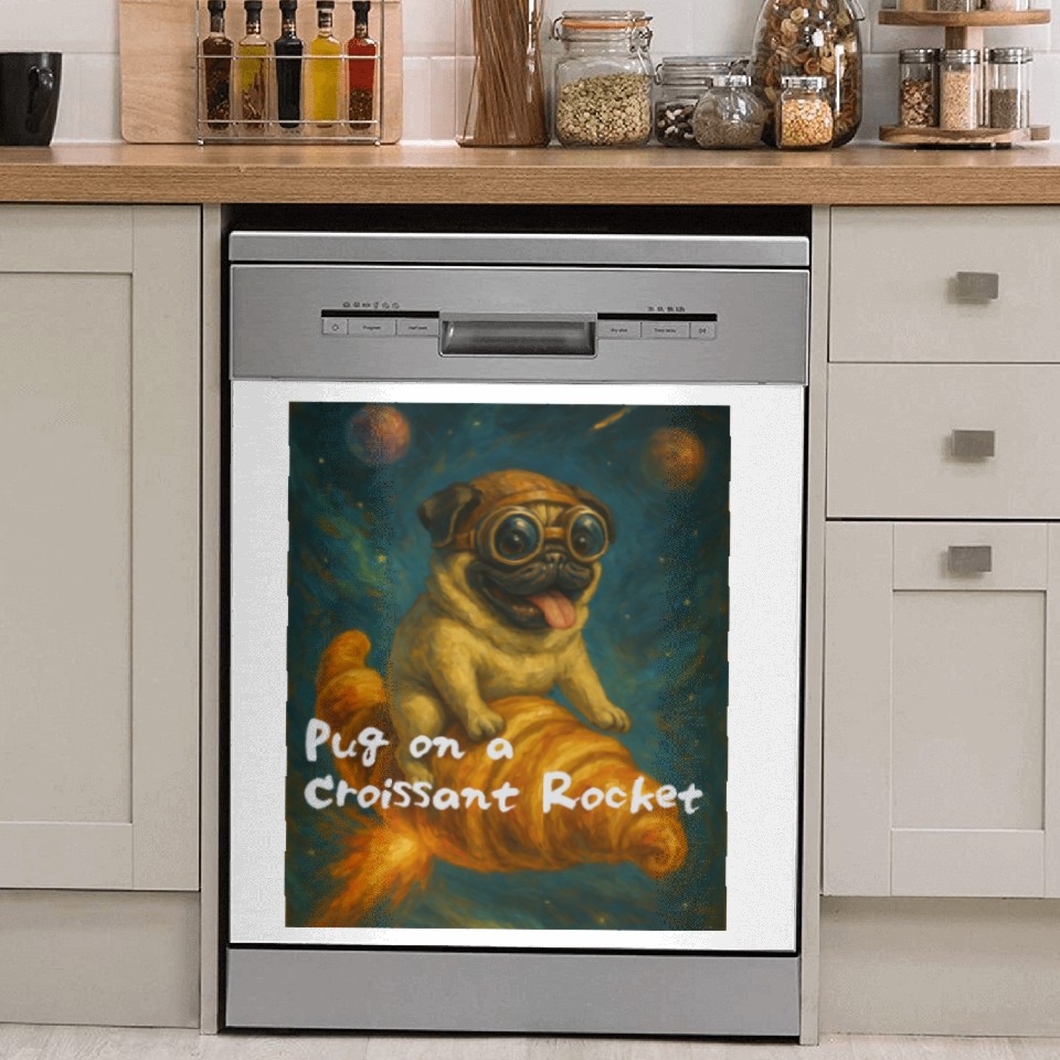 Buy eye-catching Pug on a Croissant Rocket Dish Washer Covers or see more Dish Washer Covers products at Printblur shop now to explore many surprises from our shop!