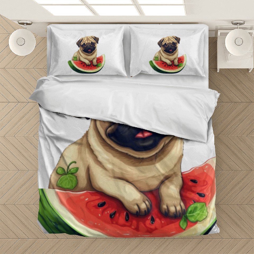 Shop for impressive Pug with Melon, Funny Summer Design for Dog Lovers Bedding Sets or see more Bedding Sets products right now on Printblur to enjoy your happiness!