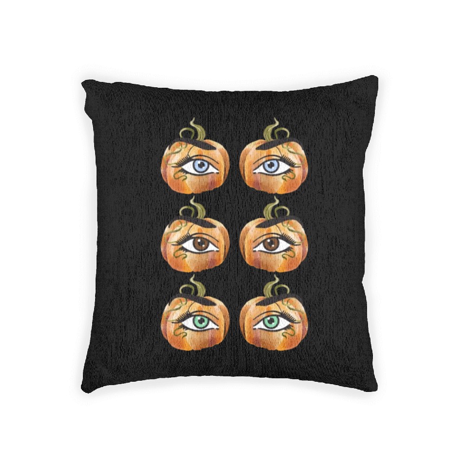 The item hot trend you're looking at is Pumpkin Eyes Realistic Blue Brown and Green Eyes Woven Pillows For Black belong theme Woven Pillows at Printblur
