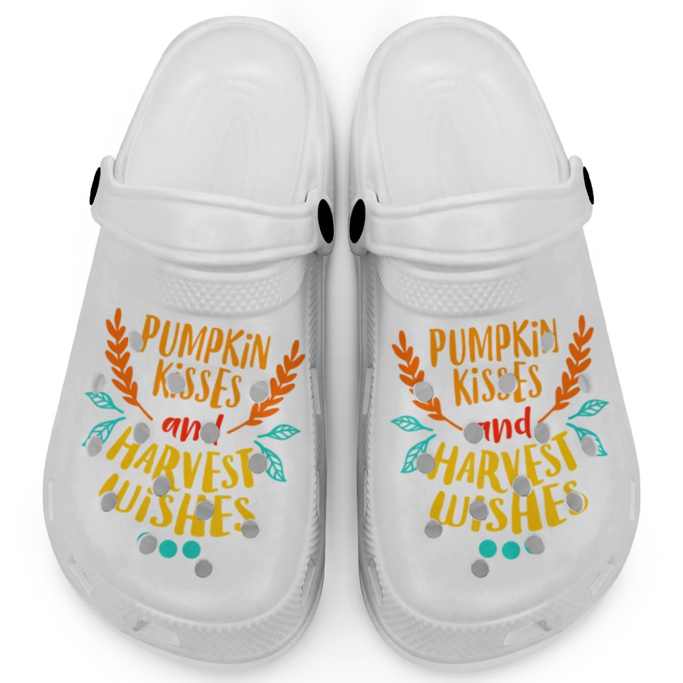 PUMPKIN KISSES HARVEST WISHES Funny Love Fall Clogs