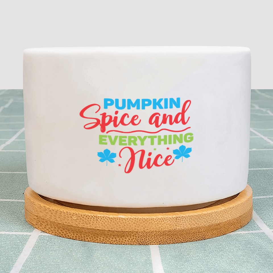 You are viewing an exclusive and elegant product Pumpkin Spice And Everything Nice Plant Pots For WHITE belong theme Plant Pots at Printblur