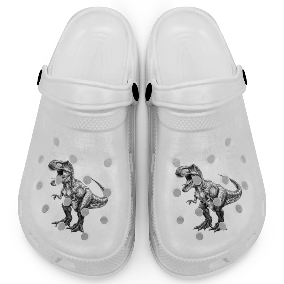 The product unique design you searched for is Punctuation Saves Lives Dinosaur Clogs For Kids WHITE belong theme Clogs at Printblur