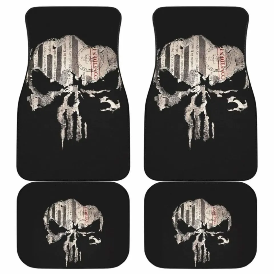 You're taking a peek at the product Punisher Skull Map Car Floor Mats Front and Back Black Universal Fit For belong theme Car Floor Mat Front with Back at Printblur