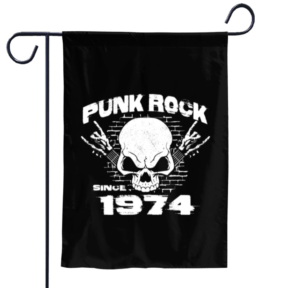 Shop for attractive Punk Rock Since 1974 - Skull Rock Hands 50th Garden Flags or see more Garden Flags products on https://printblur.com right now!