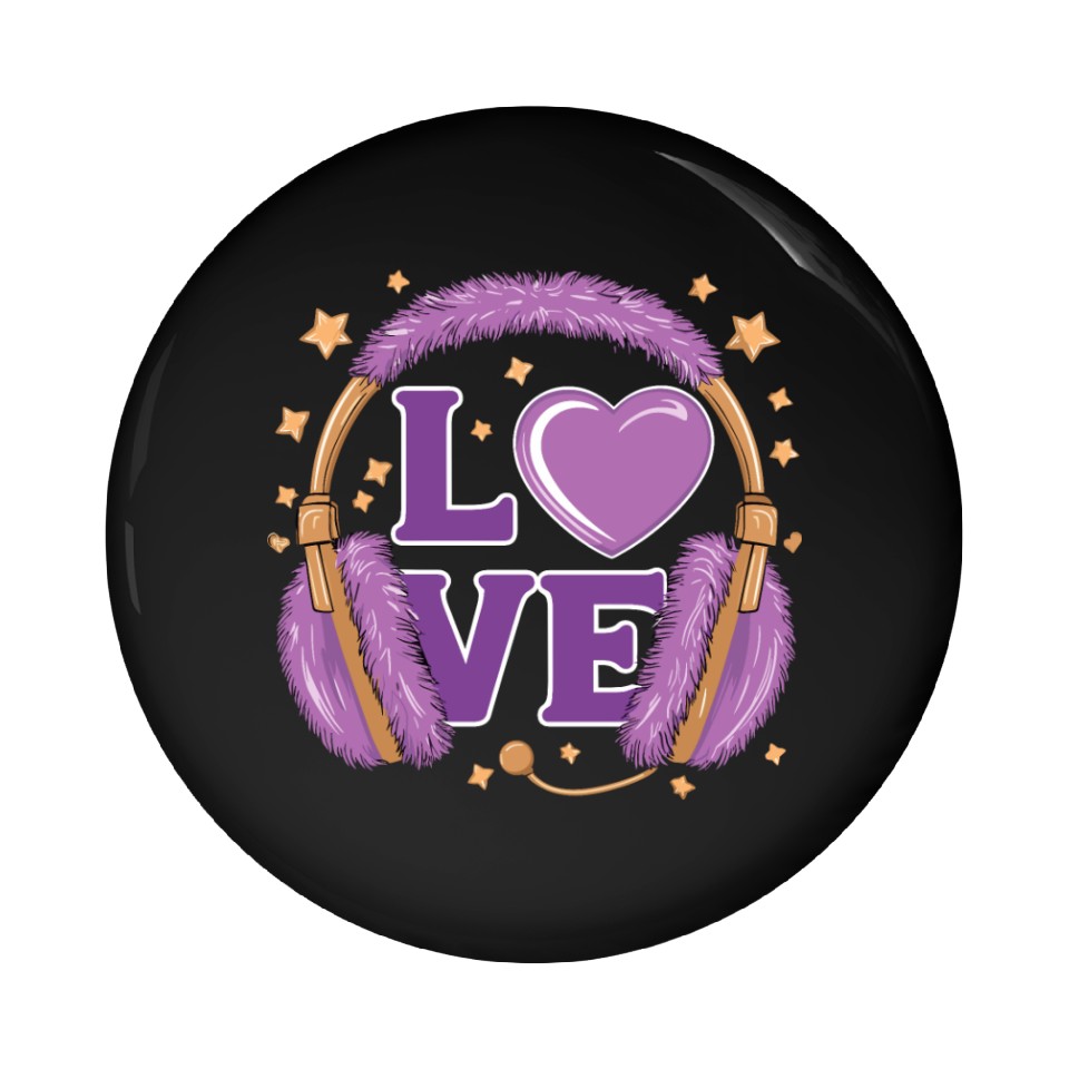 Buy eye-catching Purple Love Music Headphones with Stars and Heart Pin Buttons or see more Pin Buttons products at Printblur shop now to explore many surprises from our shop!
