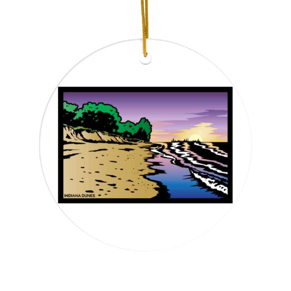 You are viewing an exclusive and elegant product Purple Twilight Indiana Dunes Poster Ceramic Ornaments For WHITE belong theme Ceramic Ornaments at Printblur