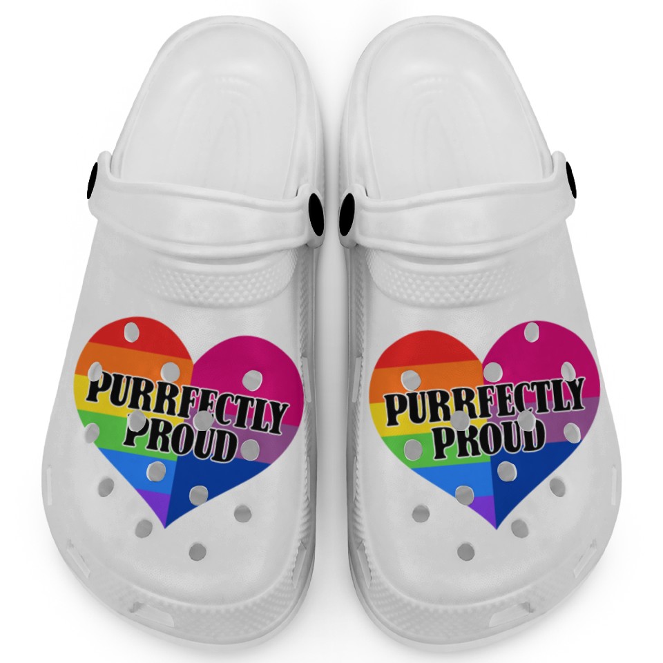 Purrfectly Proud Rainbow Bisexual Flag Heart Clogs