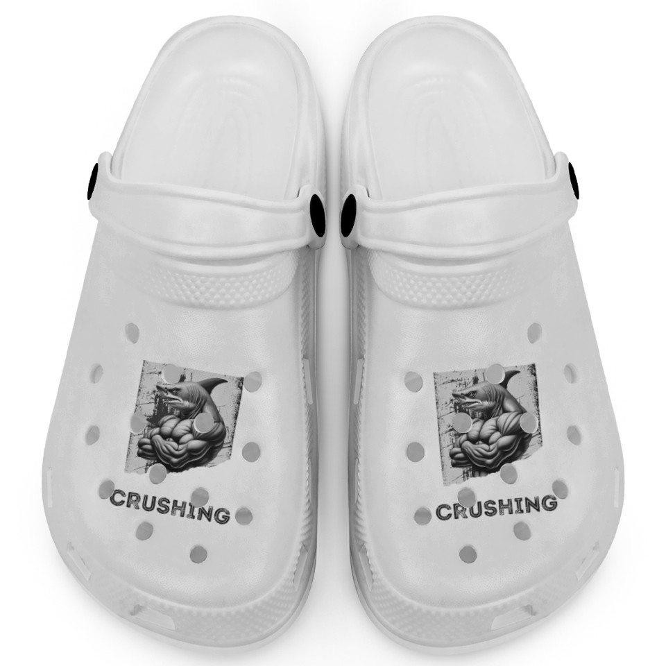 PUSHING LIMITS – Ripped Shark Gym Design Clogs