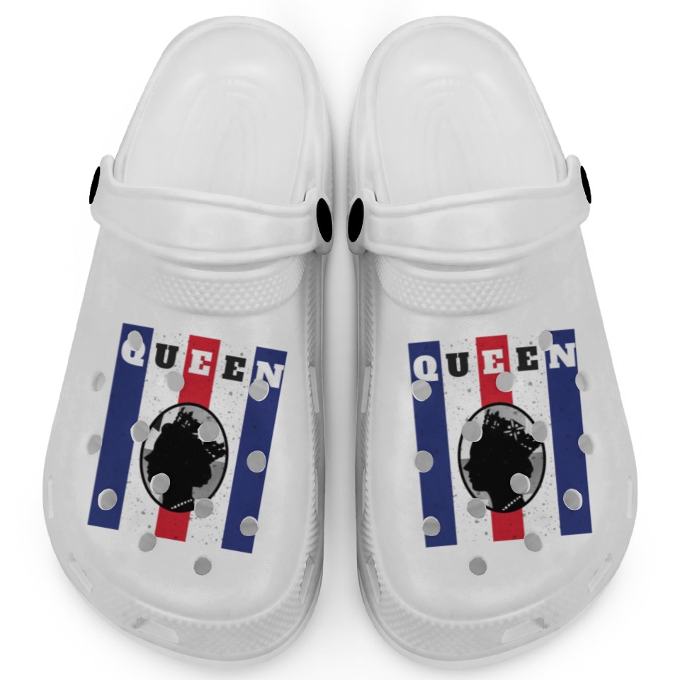 You are viewing one of the trendiest products Queen Elizabeth II RIP 1926 2022 Clogs For Kids WHITE belong theme Clogs at Printblur