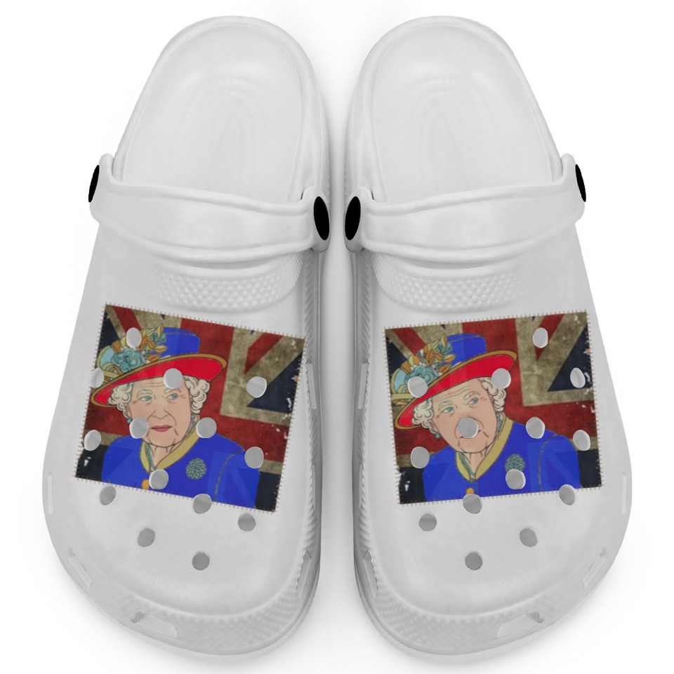 You're looking at the eye-catching product Queen Elizabeth II - rip Queen Elizabeth II - rest Clogs For Kids WHITE belong theme Clogs at Printblur