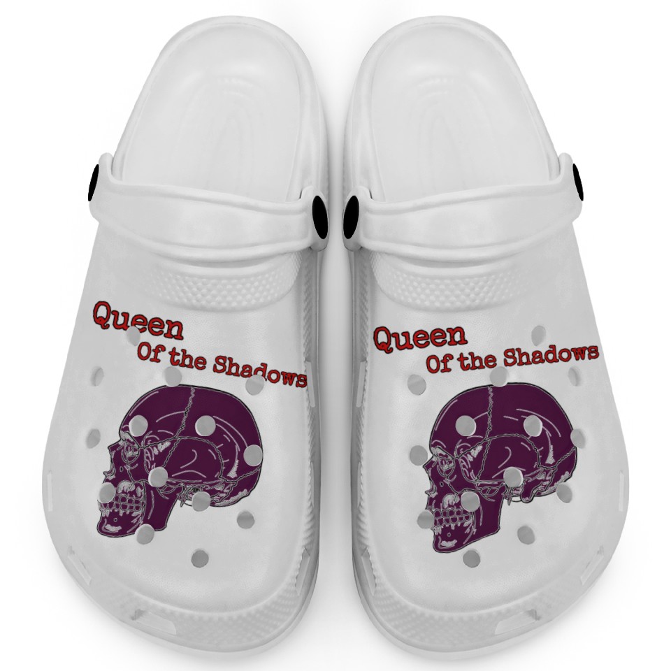 You're searching for a one-of-a-kind product Queen of the Shadows Gothic Skull Art Clogs For Kids WHITE belong theme Clogs at Printblur