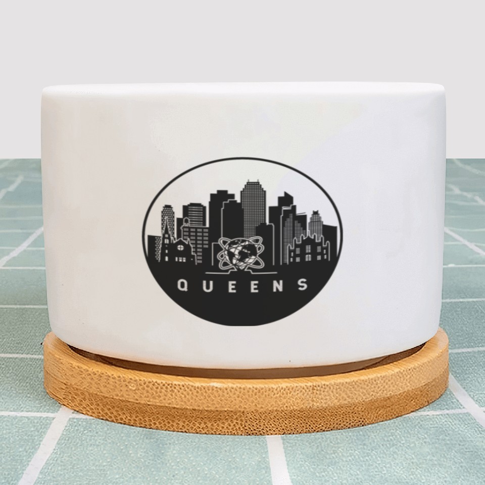 You're taking a peek at the product Queens New York Skyline Plant Pots For WHITE belong theme Plant Pots at Printblur