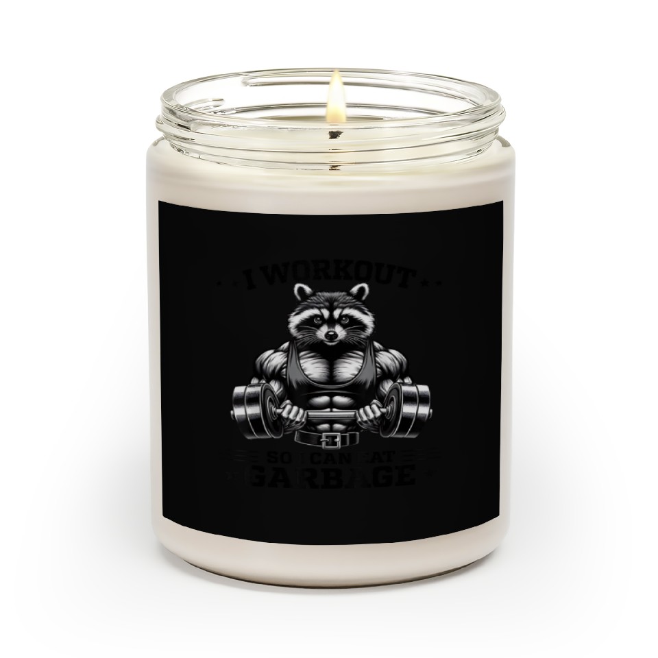 Shop for attractive Raccoon Gym Weight Training I Workout So I Can Eat Scented Candles or see more Scented Candles products on https://printblur.com right now!