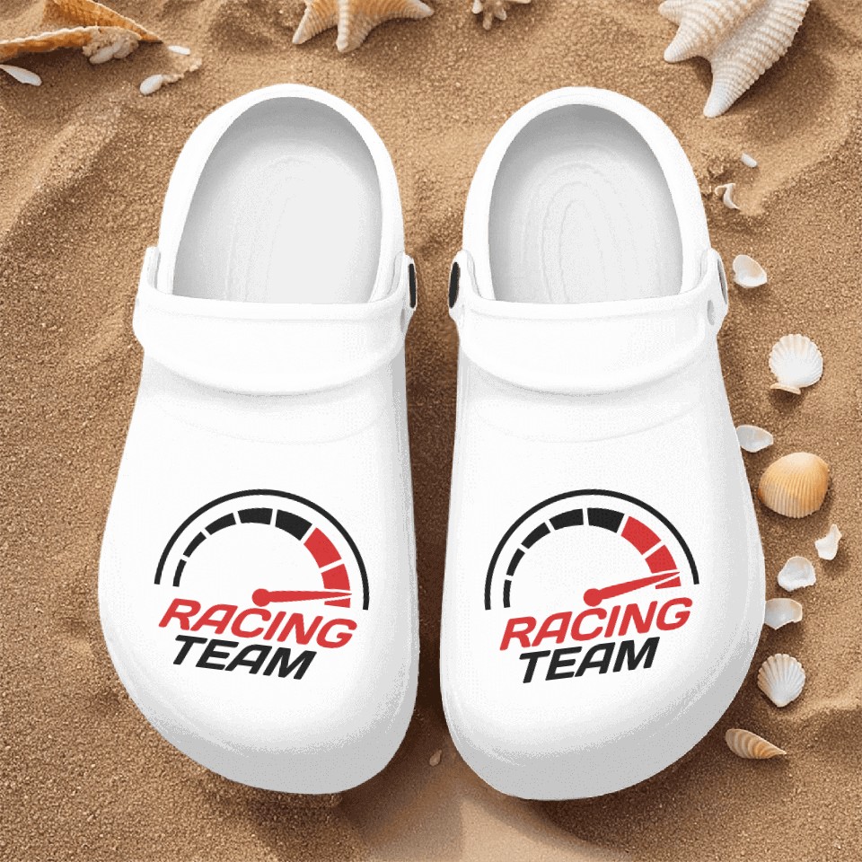 You're searching for a one-of-a-kind product Racing team speedometer quick lawn Nurse Clogs For Men WHITE belong theme Nurse Clogs at Printblur
