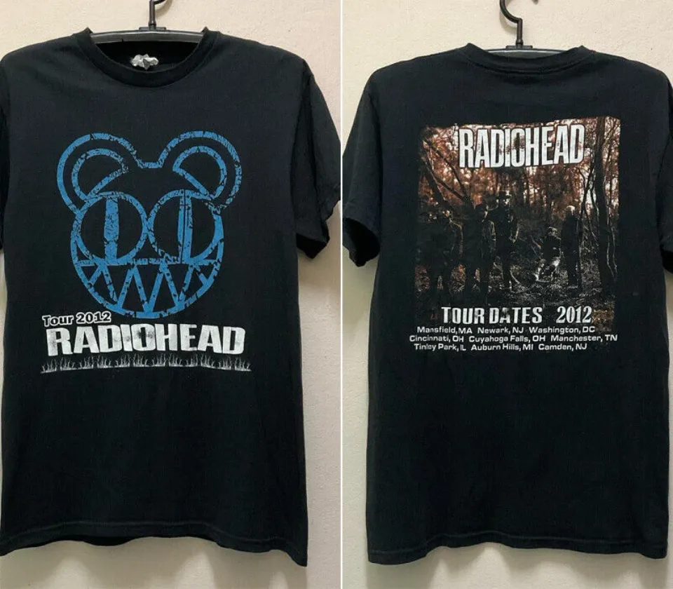 The item hot trend you're looking at is Radiohead Tour 2012 Double Sided Black T-Shirt For Men Black belong theme Double Sided T-Shirts at Printblur