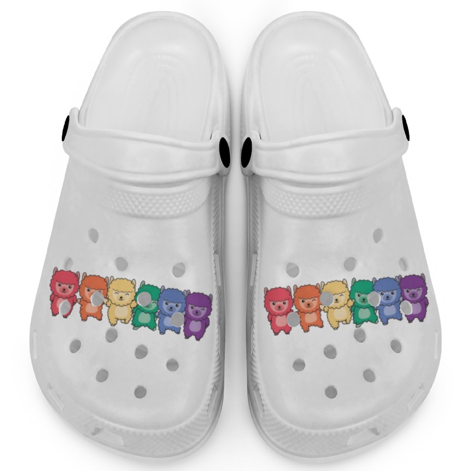 You are contemplating one of the best-selling products Rainbow Alpaca Flag Pride Lgbtq Cute Alpacas Clogs For Kids WHITE belong theme Clogs at Printblur