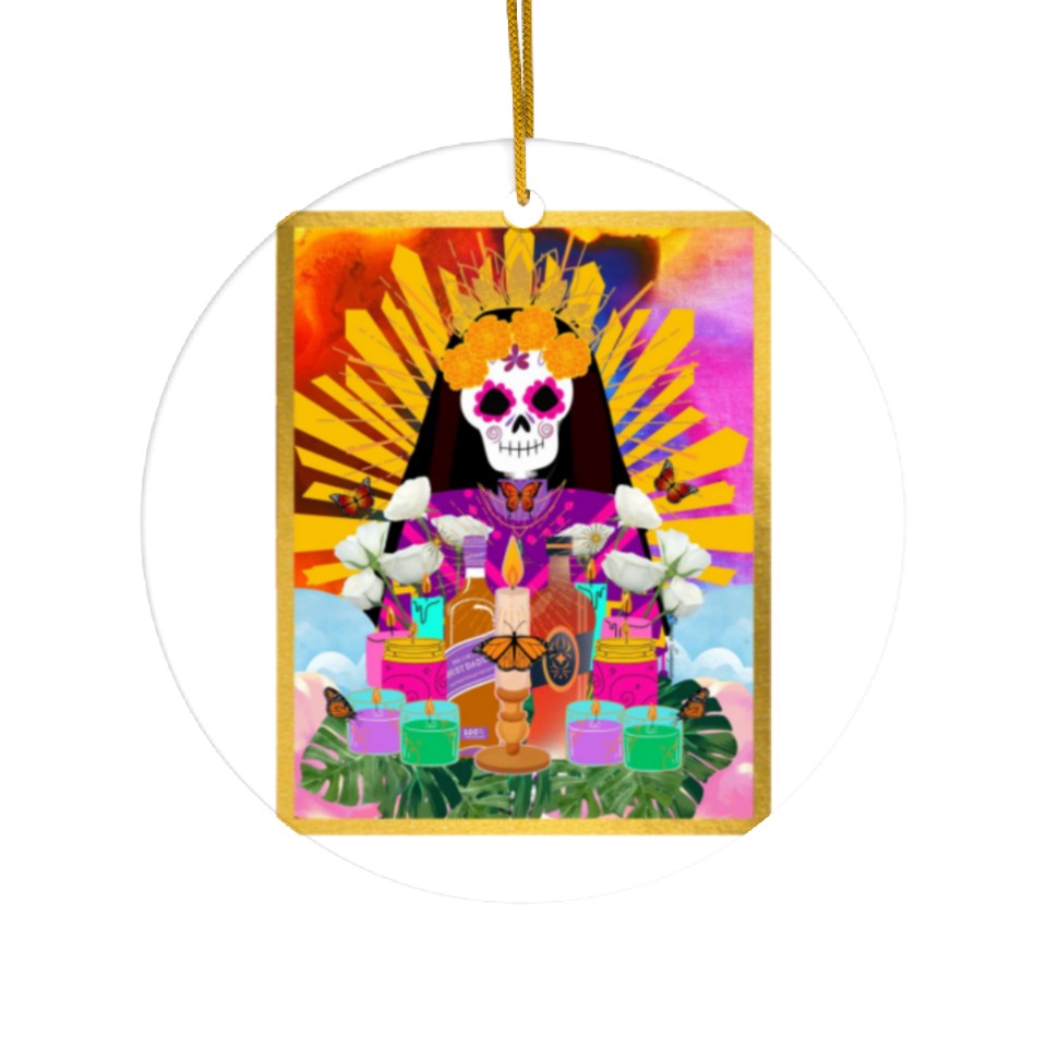 You're searching for a one-of-a-kind product Rainbow Butterfly Santa Muerte Ceramic Ornaments For WHITE belong theme Ceramic Ornaments at Printblur