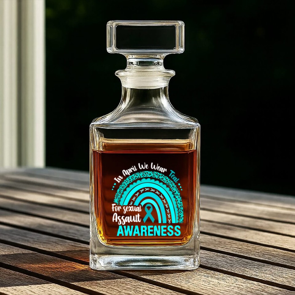 You are viewing one of the trendiest products Rainbow In April We Wear Teal Sexual Assault Aware Whiskey Decanters For belong theme Whiskey Decanters at Printblur