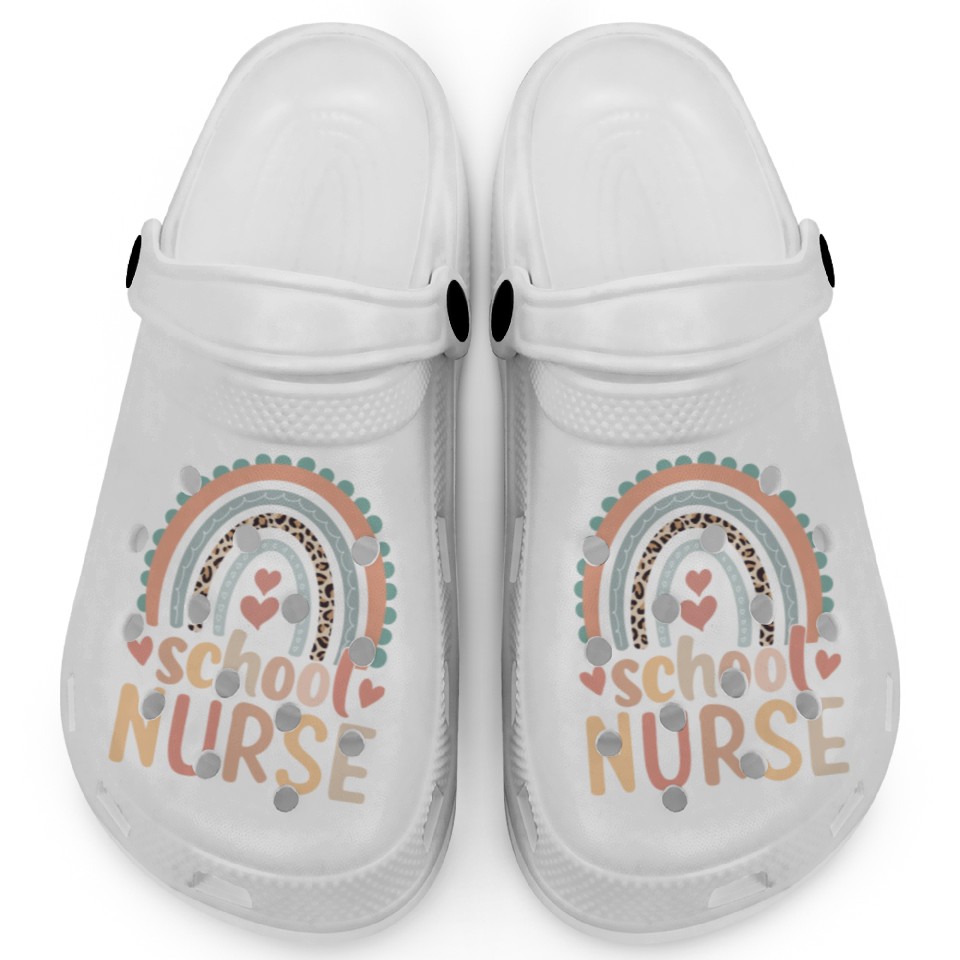 Own fascinating Rainbow Leopard Print School Nurse Back To School Clogs or see more Clogs products now from Printblur shop to enjoy your shopping time!