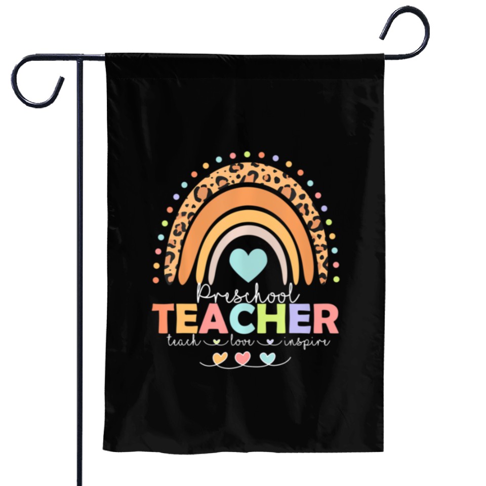 Buy eye-catching Rainbow Teach Love Inspire Preschool Teacher Back Garden Flags or see more Garden Flags products at Printblur shop now to explore many surprises from our shop!