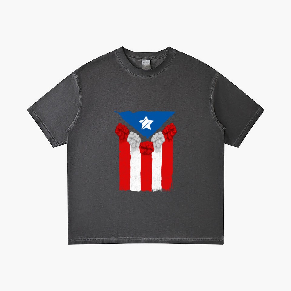 The product unique design you searched for is Raised Fists For Puerto Rico - Boricua Flag Gradient T Shirts For Men Washed Black belong theme Gradient T-Shirts at Printblur