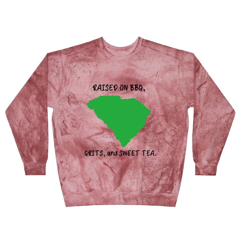 You're looking at the eye-catching product Raised On BBQ, Grits, and Sweet Tea South Carolina Blast Sweatshirts For Unisex Clay belong theme Blast Sweatshirts at Printblur