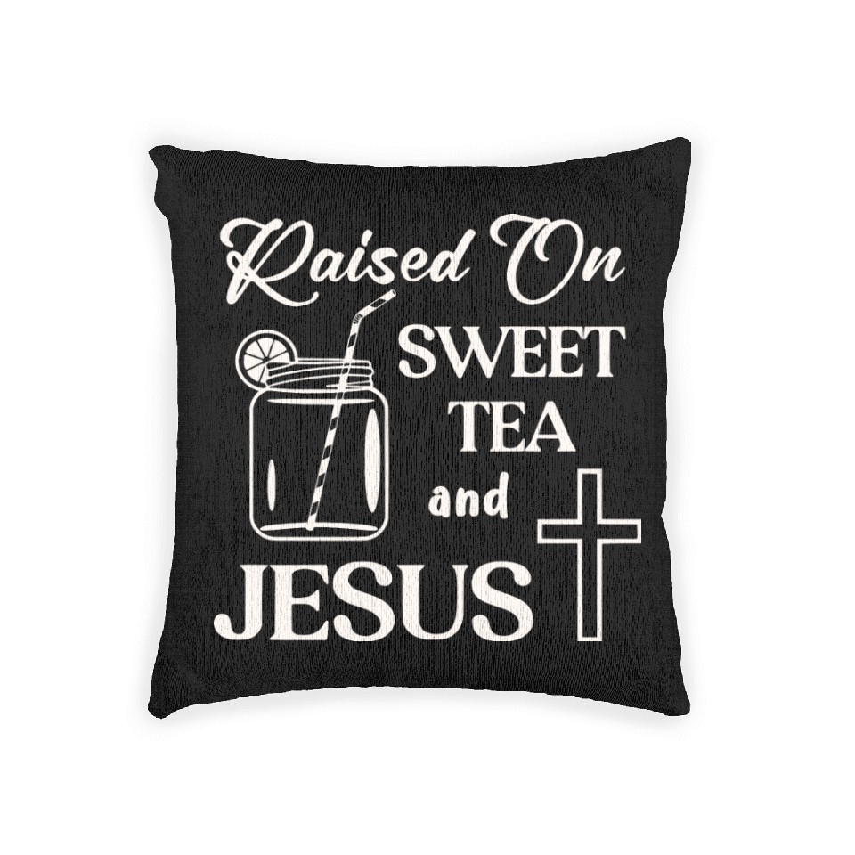 Own fascinating Raised On Sweet Tea And Jesus LIKE US ON FACEBOOK Woven Pillows or see more Woven Pillows products now from Printblur shop to enjoy your shopping time!
