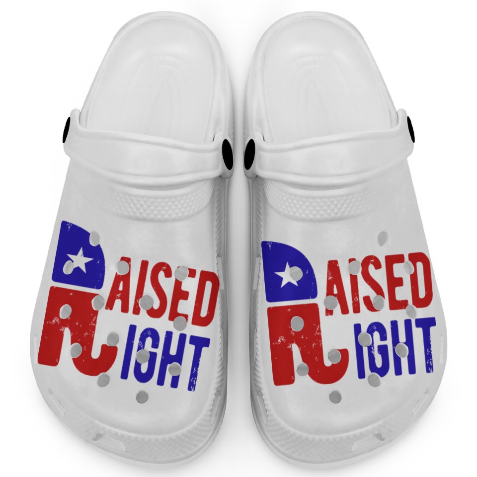 Buy eye-catching Raised Right Proud Republican Elephant Logo Usa Clogs or see more Clogs products at Printblur shop now to explore many surprises from our shop!