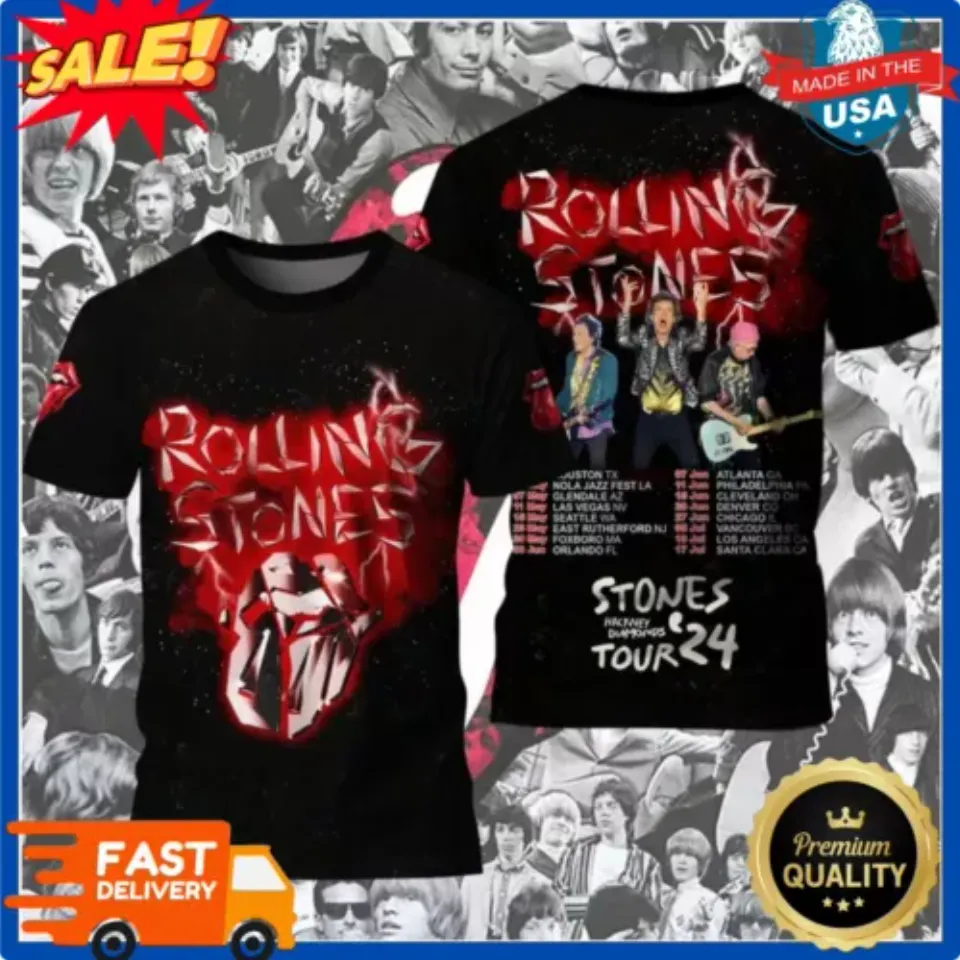 Shop for attractive Rare! The Rolling Stones Tour 2024 3D T-Shirt or see more 3D T Shirts products on https://printblur.com right now!