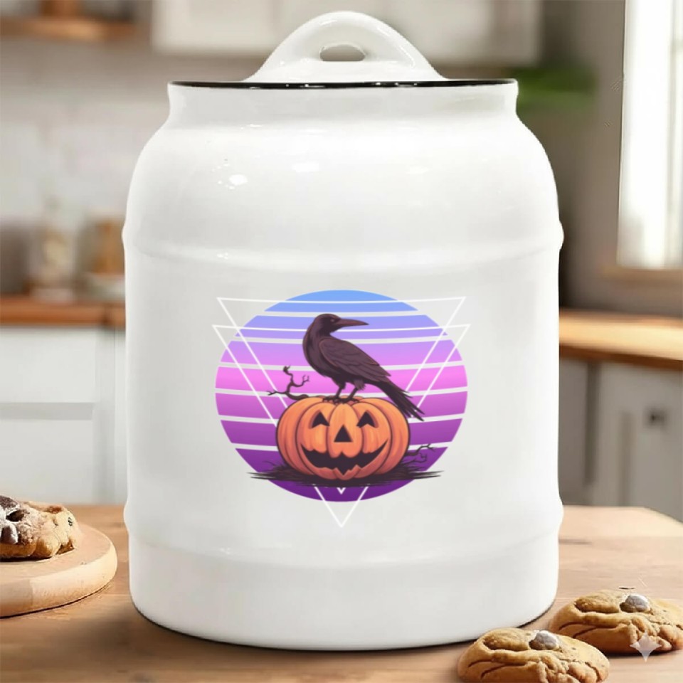 Shop for attractive Raven Crow On Pumpkin Vaporwave Halloween Pagan Ae Ceramic Cookie Jars or see more Ceramic Cookie Jars products on https://printblur.com right now!