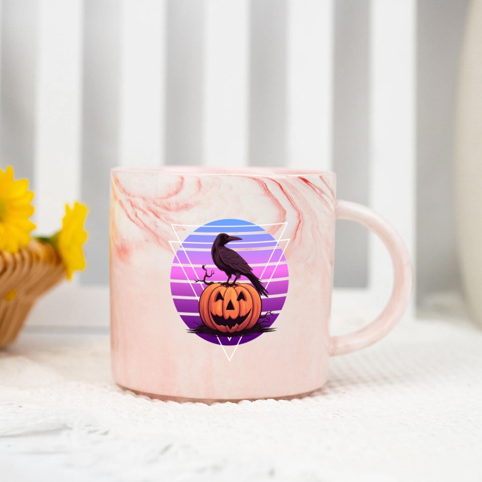 You are viewing one of the trendiest products Raven Crow On Pumpkin Vaporwave Halloween Pagan Ae Marble Mugs For Pink belong theme Marble Mugs at Printblur
