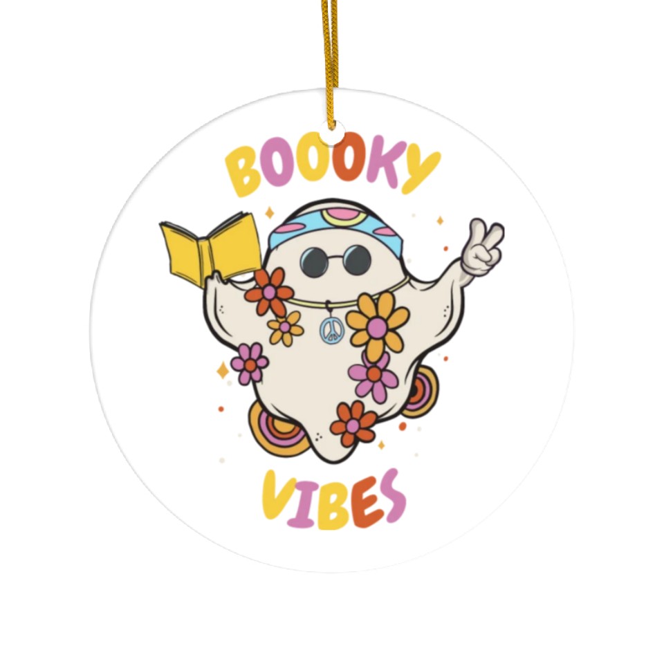 The product unique design you searched for is Reading Teacher Halloween Groovy Floral Ghost Ceramic Ornaments For WHITE belong theme Ceramic Ornaments at Printblur