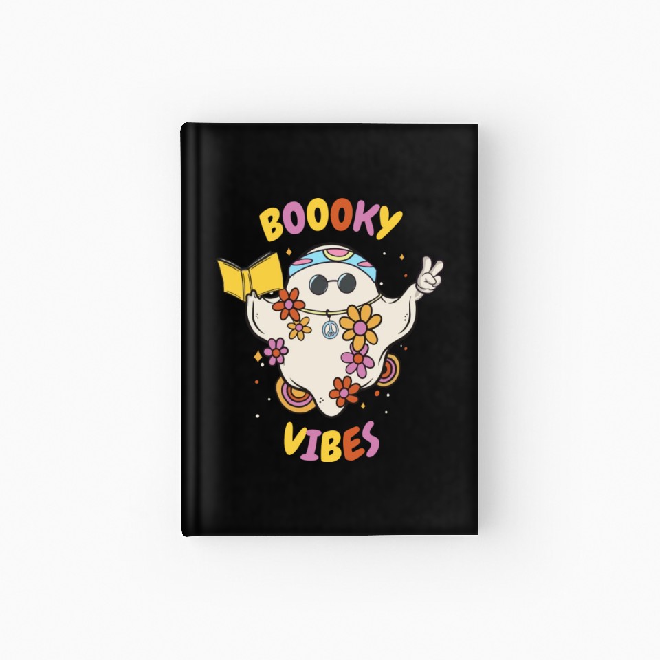You're taking a peek at the product Reading Teacher Halloween Groovy Floral Ghost Hardcover Journal For Black belong theme Hardcover Journal at Printblur