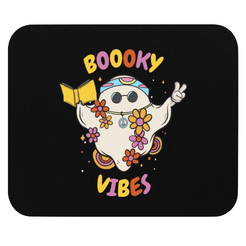 You are shopping for a stunning and trendy product Reading Teacher Halloween Groovy Floral Ghost Mouse Pads For Black belong theme Mouse Pads at Printblur