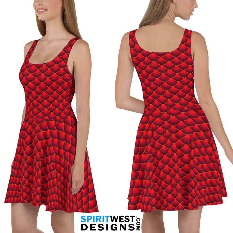 Shop for impressive Red Dragon Costume Skater Dress | Mushu Reptile Lizard Scales Cosplay Halloween Costume | Dance RunDisney Activewear or see more Skater Dresses products right now on Printblur to enjoy your happiness!