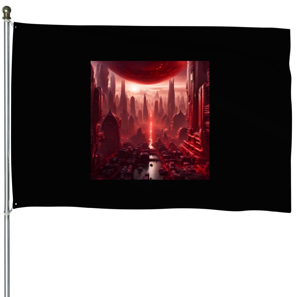 The item hot trend you're looking at is Red Megapolis City On Alien Planet Sci-Fi Topic House Flags For Black belong theme House Flags at Printblur