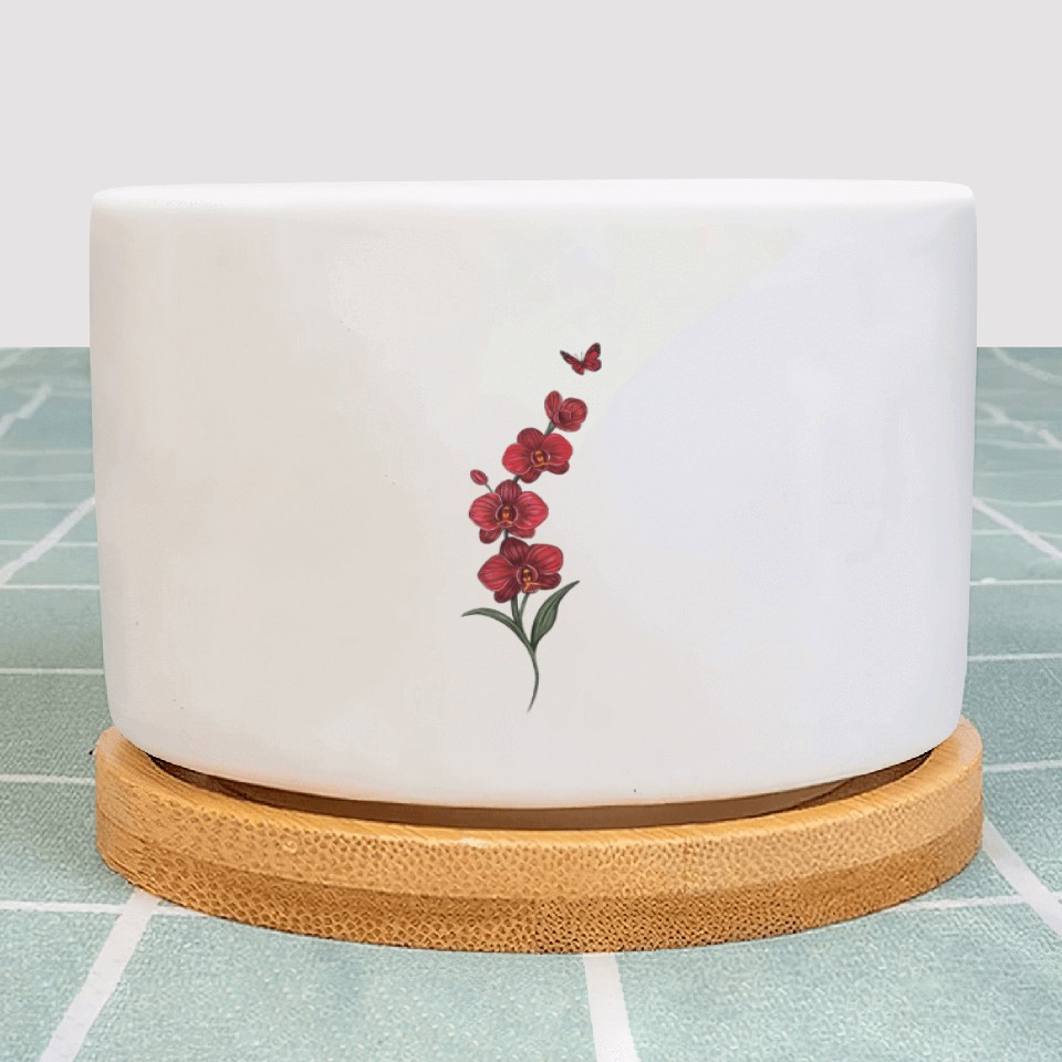Shop for attractive Red Orchid Flowers illustration with red butterfly Plant Pots or see more Plant Pots products on https://printblur.com right now!