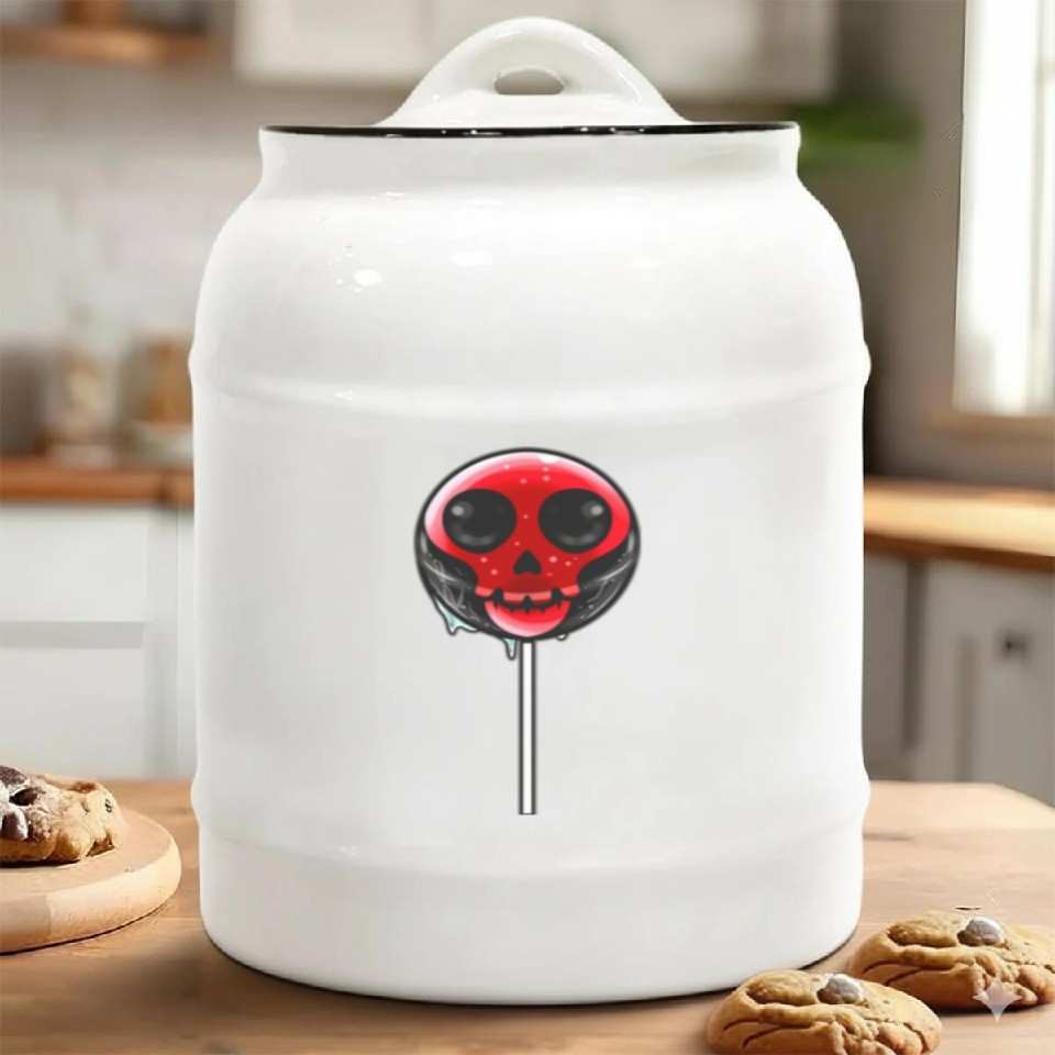 You are viewing an exclusive and elegant product Red Skull Lollipop Trick Or Treat Halloween Ceramic Cookie Jars For belong theme Ceramic Cookie Jars at Printblur