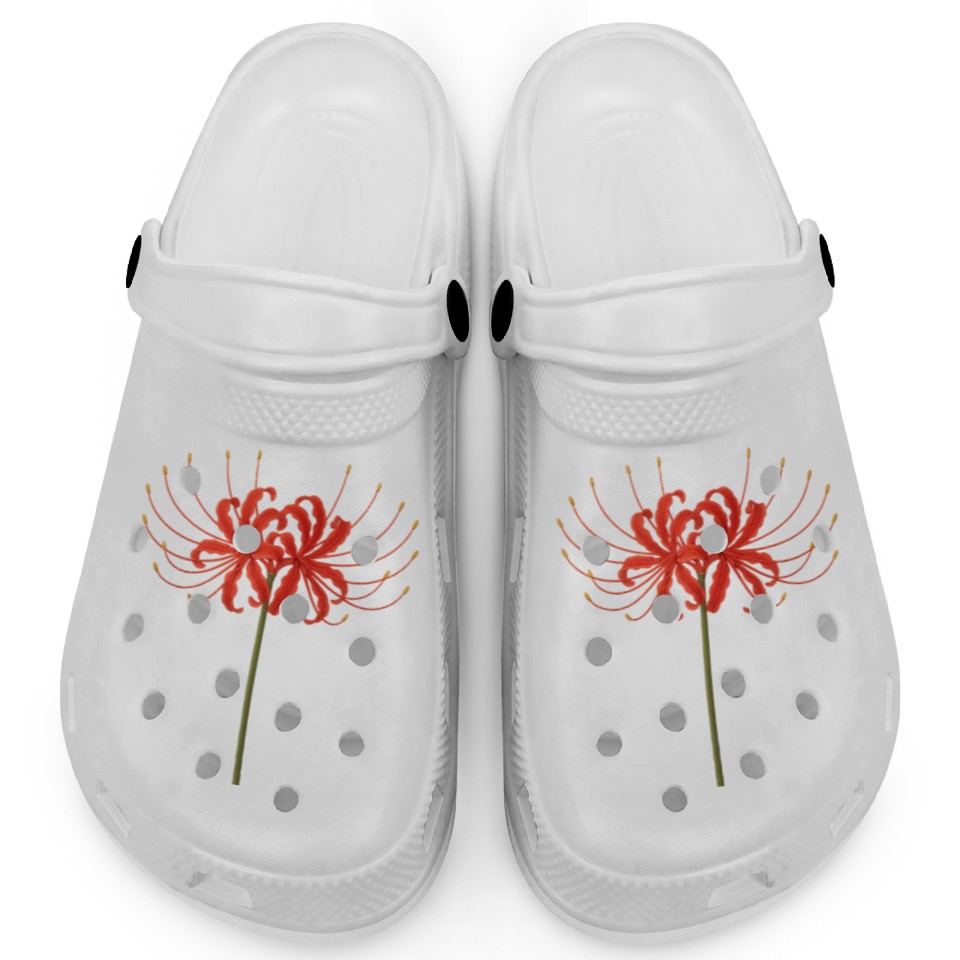 The item hot trend you're looking at is Red Spider Lily Clogs – Japanese Death Flower Ar For Kids WHITE belong theme Clogs at Printblur