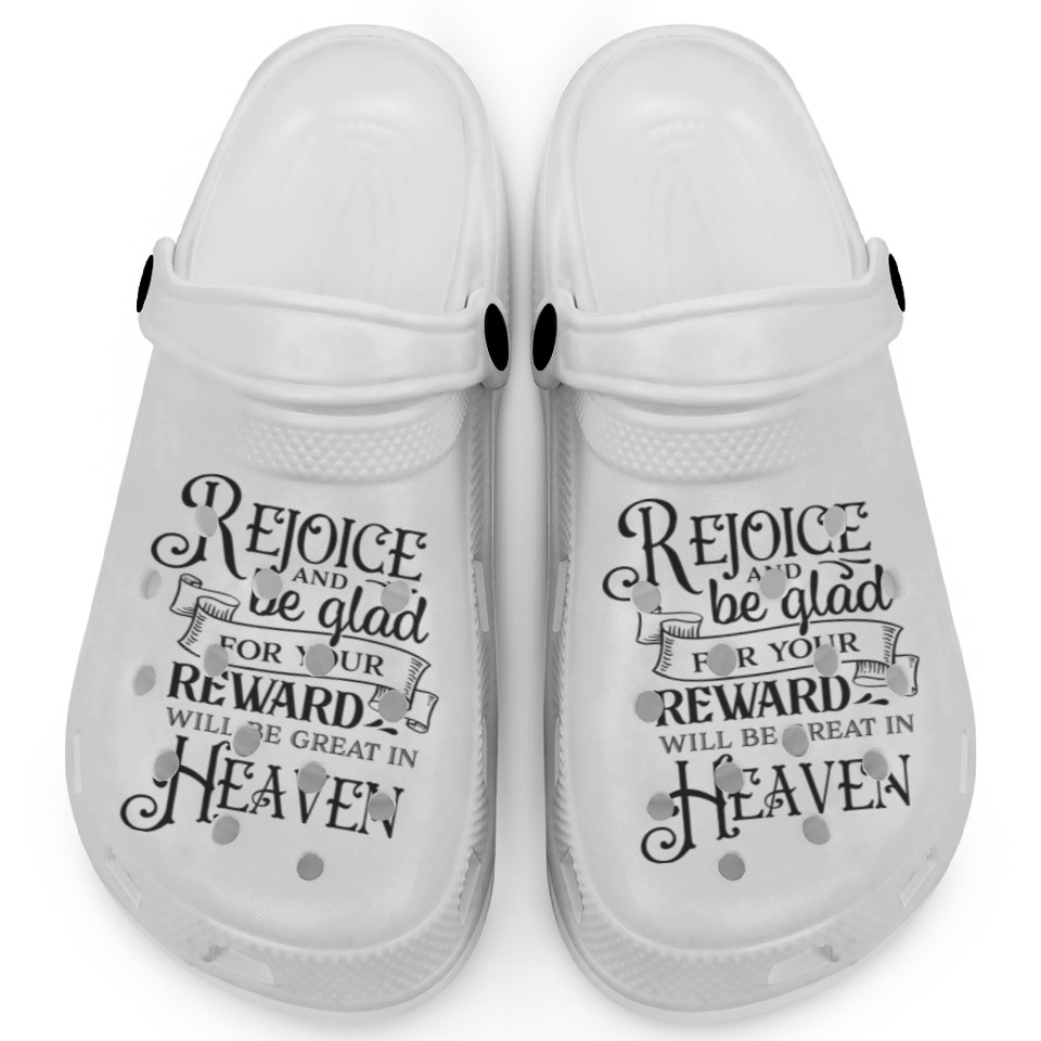 Buy stunning Rejoice And Be Glad For Your Reward Will Be Great Clogs or see more Clogs products at Printblur right now to receive many amazing discounts!