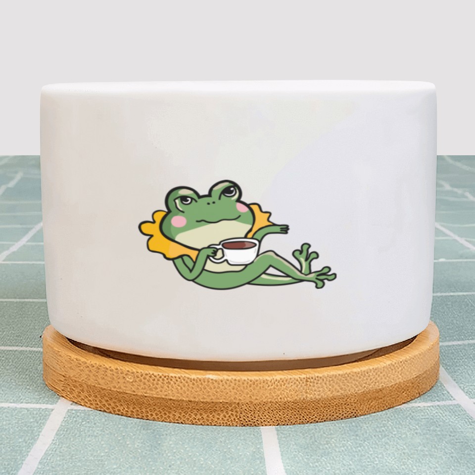 Buy eye-catching Relaxing Green Frog coffee Lover Plant Pots - Unique or see more Plant Pots products at Printblur shop now to explore many surprises from our shop!