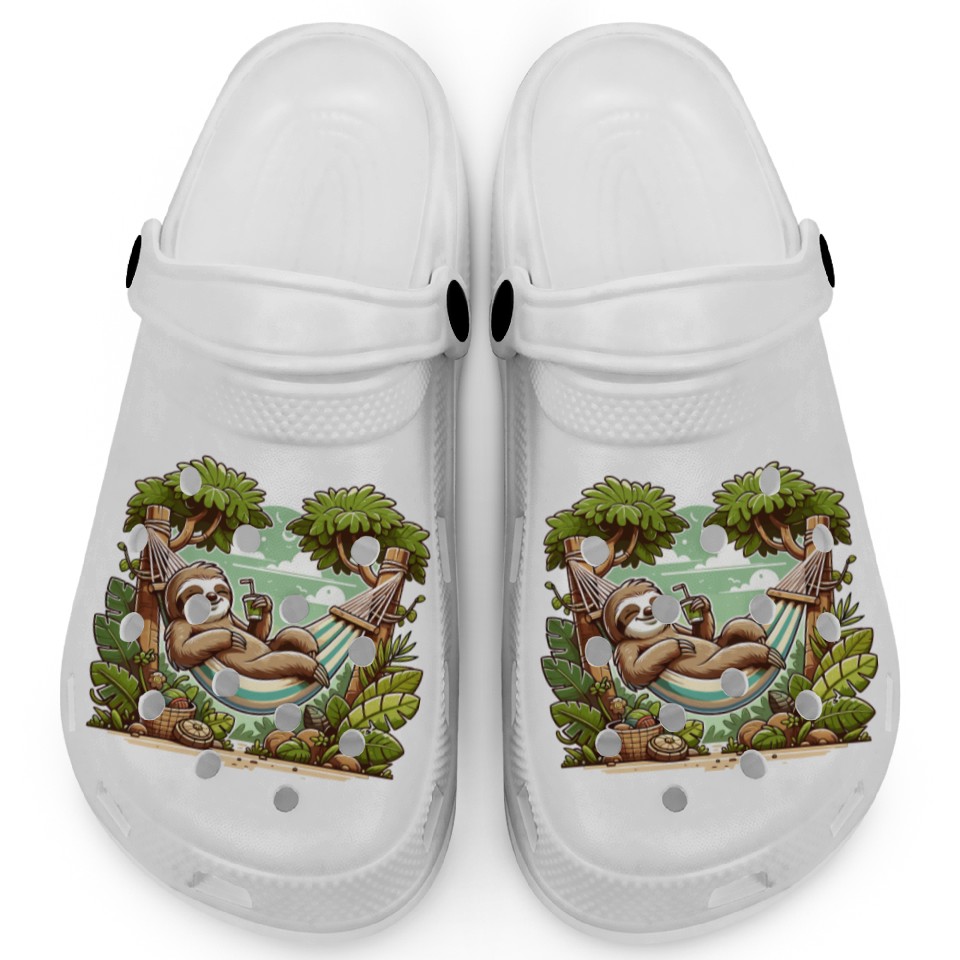 Relaxing Sloth In Hammock Under Palm Trees Clogs