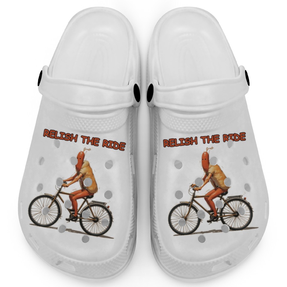 Shop for attractive Relish the Ride: Hotdog Bicycle Clogs or see more Clogs products on https://printblur.com right now!