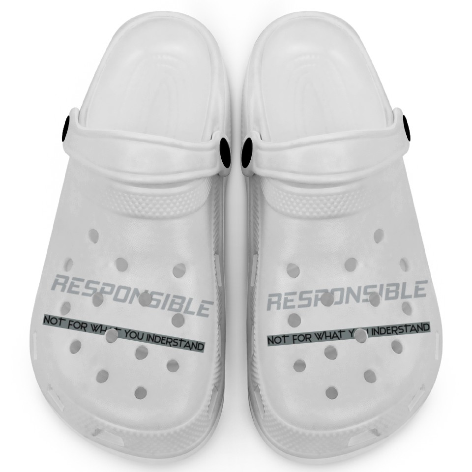 You are viewing an exclusive and elegant product Responsible Graphic Novelty Sarcastic Funny DARK Clogs For Kids WHITE belong theme Clogs at Printblur