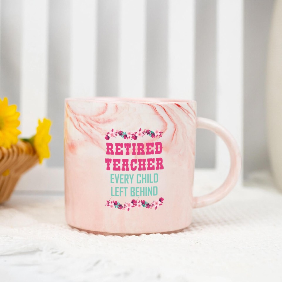 You are viewing one of the trendiest products Retired Teacher Every Child Left Behind Retiree Marble Mugs For Pink belong theme Marble Mugs at Printblur